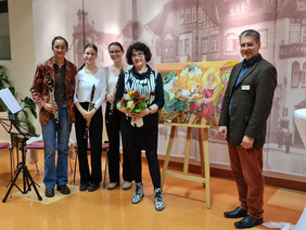 Mit einer stimmungsvollen Vernissage wurde die neue Ausstellung eröffnet. Nach der Begrüßung durch Einrichtungsleiter Martin Hayer führte Marion Stegmann mit einer interessanten Schilderung ihrer persönlichen Geschichte in die Ausstellung ein. Eine sehr schöne musikalische Begleitung boten drei junge Klarinettistinnen der Musikakademie VS.